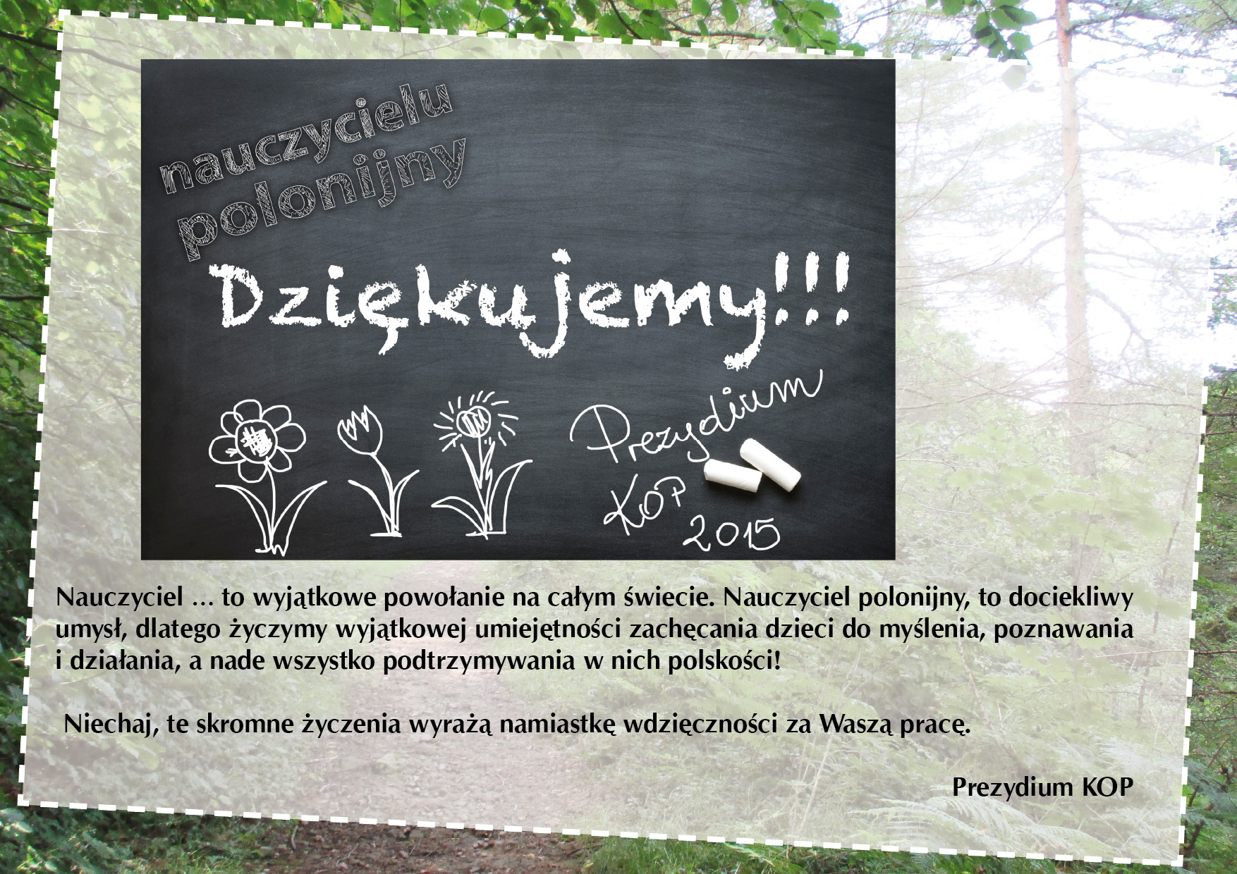 Nauczyciel … to wyjątkowe powołanie na całym świecie. Nauczyciel polonijny, to dociekliwy umysł, dlatego życzymy wyjątkowej umiejętności zachęcania dzieci do myślenia, poznawania i działania, a nade wszystko podtrzymywania w nich polskości!