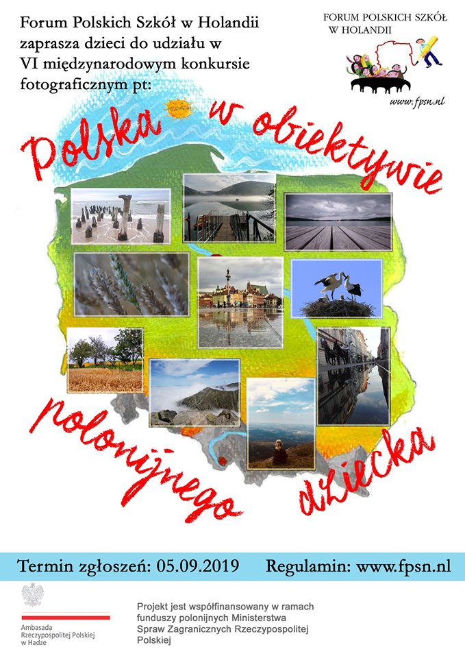 Forum Polskich Szkół w Holandii zaprasza polonijne dzieci i młodzież z całego świata do udziału w VI Wakacyjnym Konkursie Fotograficznym: „Polska w obiektywie polonijnego dziecka”. Każde polonijne dziecko w wieku 4-18 lat mieszkające poza Polską może wysłać nam maksymalnie trzy zdjęcia wykonane samodzielnie w czasie wakacyjnego pobytu w Polsce. Na konkurs nadsyłamy zdjęcia zrobione przez dzieci, a nie zdjęcia dzieci.