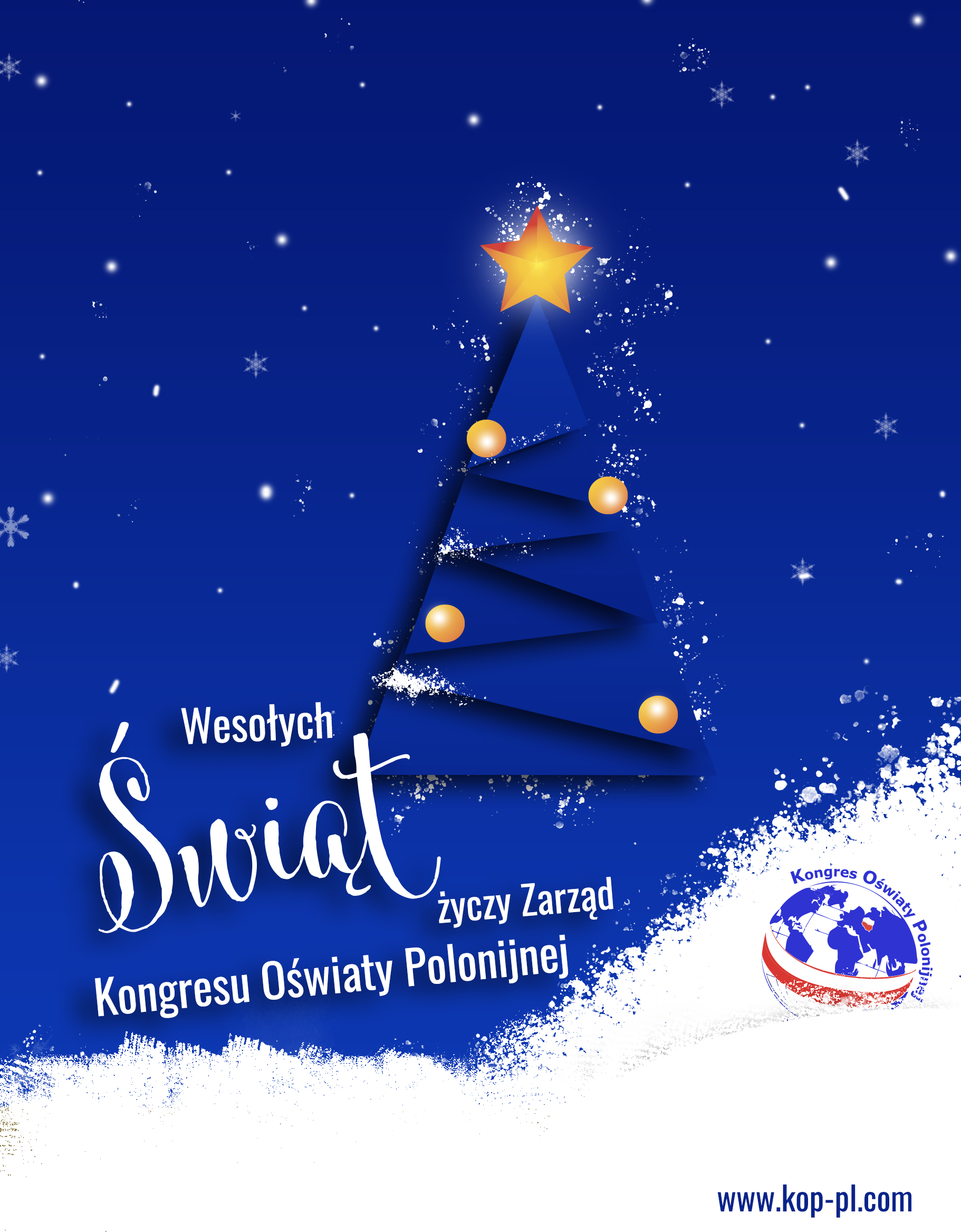 Niech magiczna moc wigilijnego wieczoru przyniesie Wam spokój i radość. Niech każda chwila Świat Bożego Narodzenia żyje pięknem obdarowując Was pomyślnością i szczęściem w Nowym 2021 Roku życzy Jolanta Tatara Przewodnicząca Kongresu Oświaty Polonijnej wraz z Zarządem KOP.