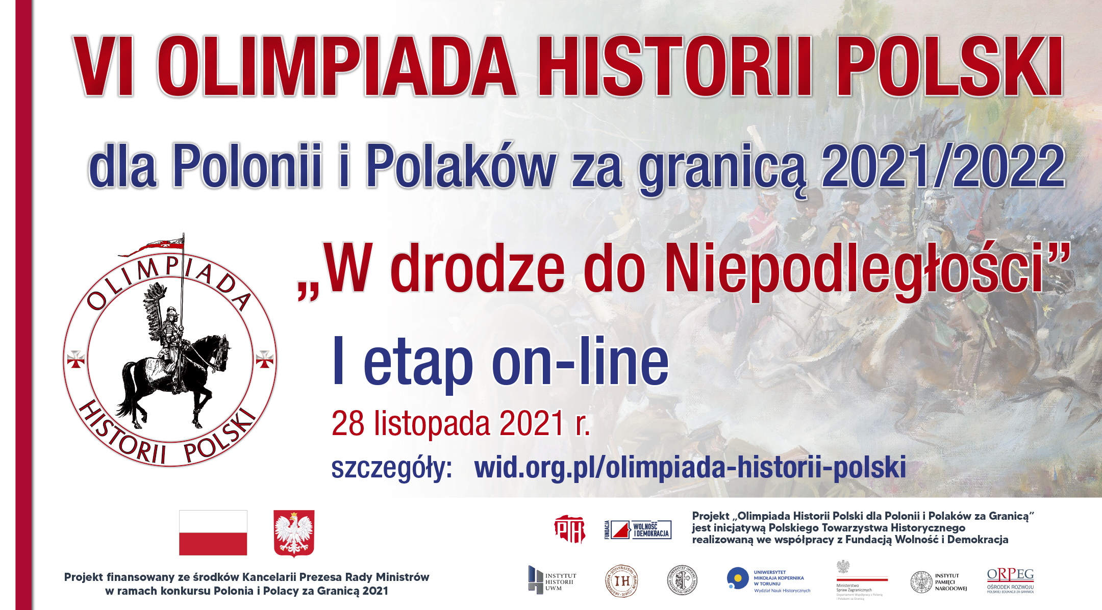 Serdecznie zapraszamy do udziału w VI edycji Olimpiady Historii Polski dla Polonii i Polaków za granicą 2021/2022 „W drodze do Niepodległości”.