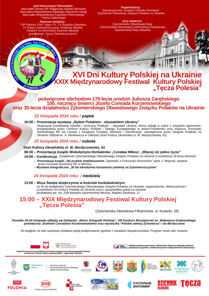 Organizator Stowarzyszenie „Kongres Oświaty Polonijnej” oraz Żytomierski Obwodowy Związek Polaków na Ukrainie
